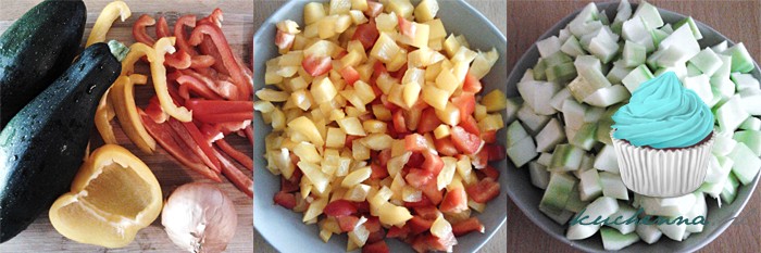 Cebulę i czosnek drobno posiekać i podsmażyć na oliwie z oliwek. Dodać pozbawione gniazd nasiennych i pokrojone w kostkę papryki, pieczarki (opcjonalnie) oraz rozdrobnione (np. przy użyciu noży malaksera) kiełbaski. Cukinie obrać ze skóry, wydrążyć nasiona, pokroić w grubą kostkę i połączyć z pozostałymi składnikami. Podlać wodą i delikatnie dusić. Cukinia musi zmięknąć, lecz trzeba uważać by nie zamieniła się w „papkę”. Na koniec należy dołożyć koncentrat pomidorowy i oregano oraz doprawić do smaku solą, pieprzem i ostrą papryką.