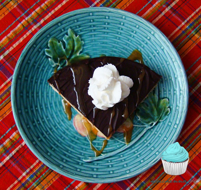 Każdego andruta należy posmarować masą kajmakową,  przykrywając kolejnym jeden po drugim. Całość obciążyć talerzem lub deską do krojenia i schłodzić przez noc w lodówce. Czekoladę rozpuścić z masłem w garnku o podwójnym dnie. Posmarować mini torcik. Po zastygnięciu polewy pokroić na mniejsze kawałki. Udekorować wedle uznania 😀